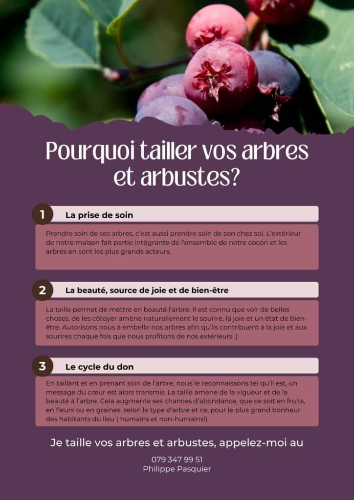 Avec les années de pratique, j’ai développé une sensibilité particulière avec les arbres. Je pratique la taille consciente, une taille basée sur l’écoute, le respect et la considération de chacune des parties (humain et arbre). Je fais aussi des travaux de plantations. 100.-/h.
